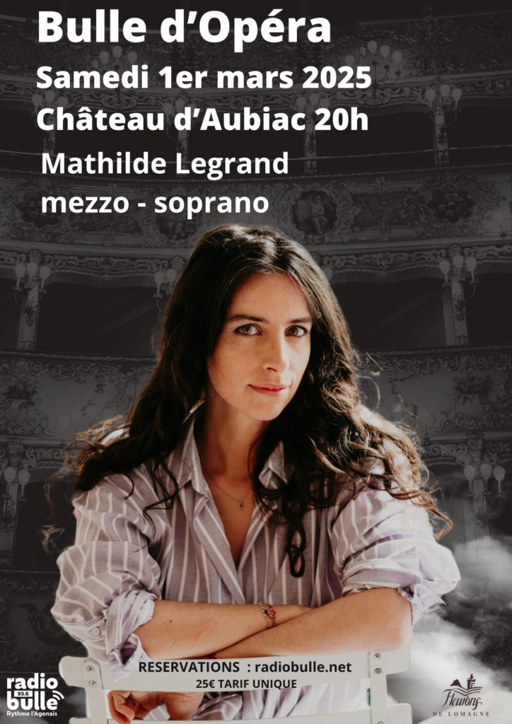 Formée à la Chapelle Reine Elisabeth en Belgique (avec José Van Dam et Sophie Koch), à l’Opéra Studio de Berne ainsi qu’à la Schola Cantorum de Bâle, La mezzo-soprano Mathilde Legrand interprète un répertoire très éclectique, qu’elle fera vivre le 1er mars au Château d’Aubiac.