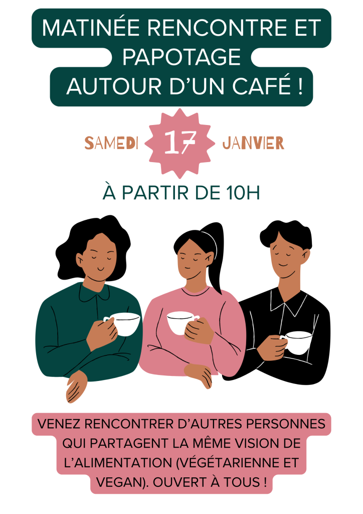 Venez rencontrer d’autres personnes qui partagent les mêmes valeurs que vous, à savoir l’alimentation végétale !