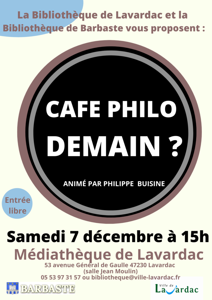 Dans le cadre du partenariat culturel entre Barbaste et Lavardac, un Café Philo aura lieu le 7 décembre à 15 h à la salle Jean Moulin à côté de la Médiathèque.