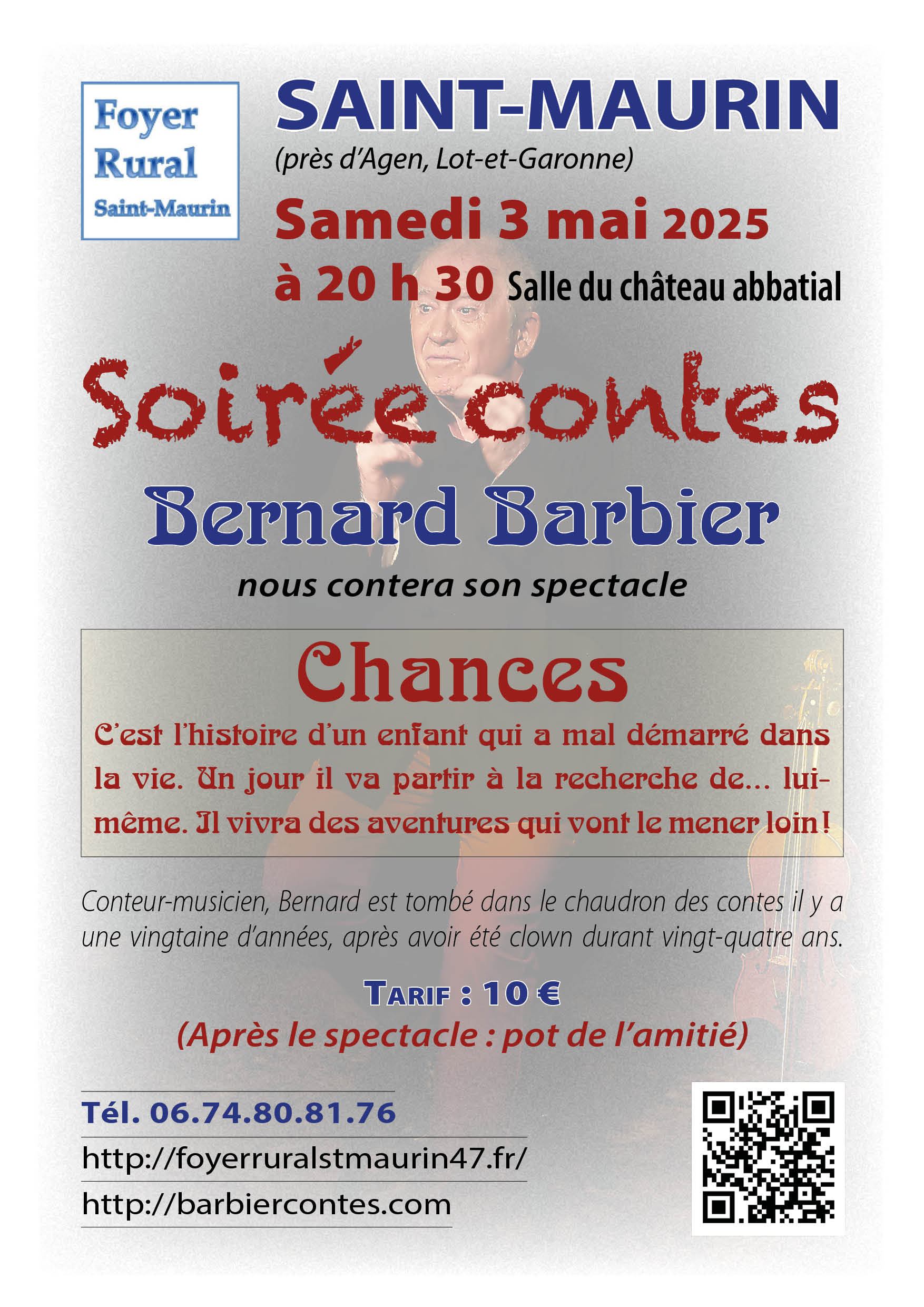 Après le Festival 2025, « Alors raconte » produit en Tarn et Garonne au mois de février, Bernard Barbier propose son spectacle « Chances ».