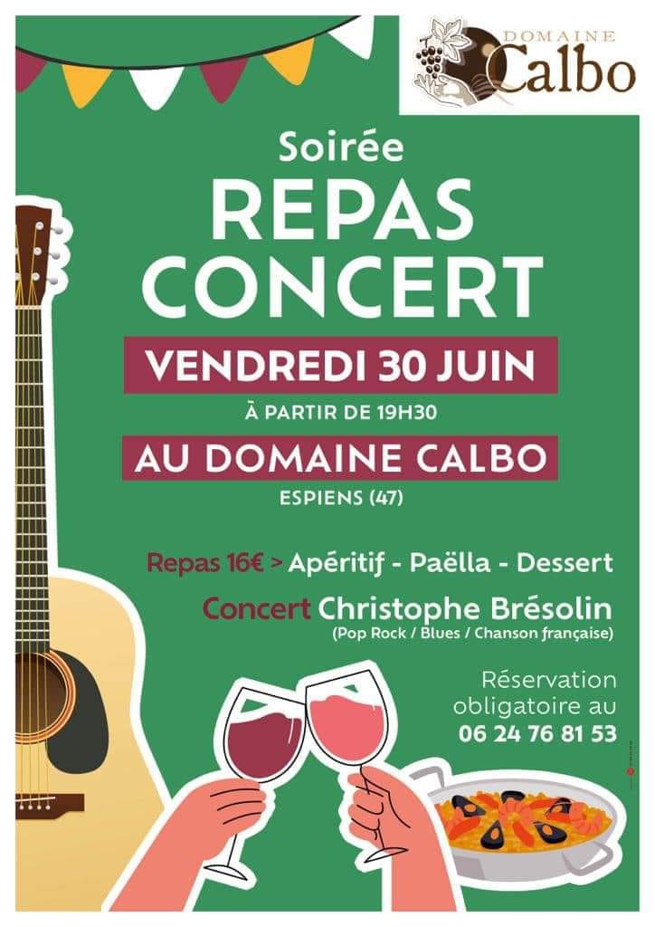 Repas Paëlla et Concert Pop-Rock-Blues par Christophe Brésolin.