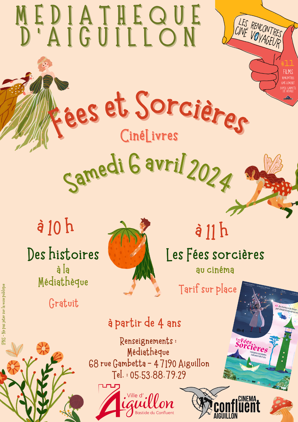 Dans le cadre des Rencontres du Ciné Voyageur, et en partenariat avec le Cinéma Confluent, la médiathèque vous invite à un Ciné Livres.A 10h à la médiathèque : pour un moment lecture à la rencontre des fées et des sorcières de la médiathèque !