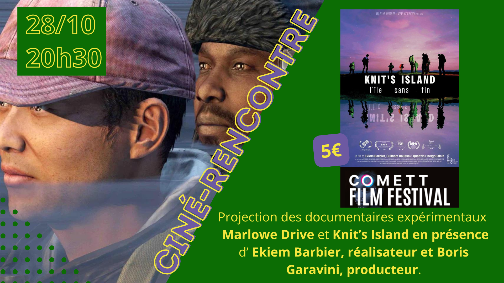 Projection des documentaires expérimentaux Marlowe Drive et Knit’s Island en présence d’Ekiem Barbier, réalisateur et Boris Garavini, producteur.