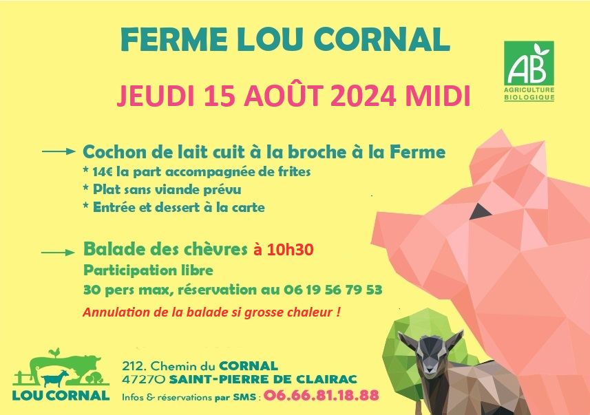 Rendez-vous Jeudi 15 Août midi pour un nouveau repas à la ferme!