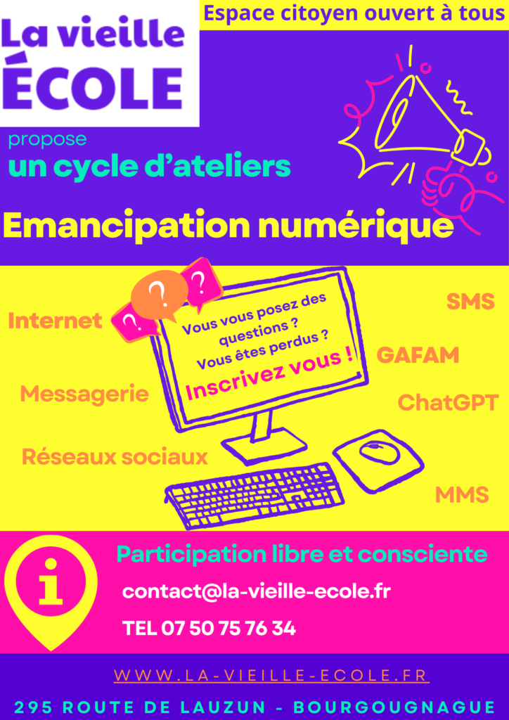 Cycle d’ateliers autours de l’émancipation numérique pour apporter des solutions et une éthique dans nos pratiques numériques.