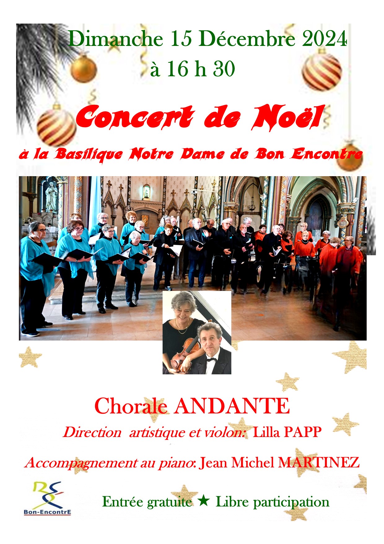 Concert de Noël à la Basilique Notre Dame de Bon Encontre avec la Chorale Andante.