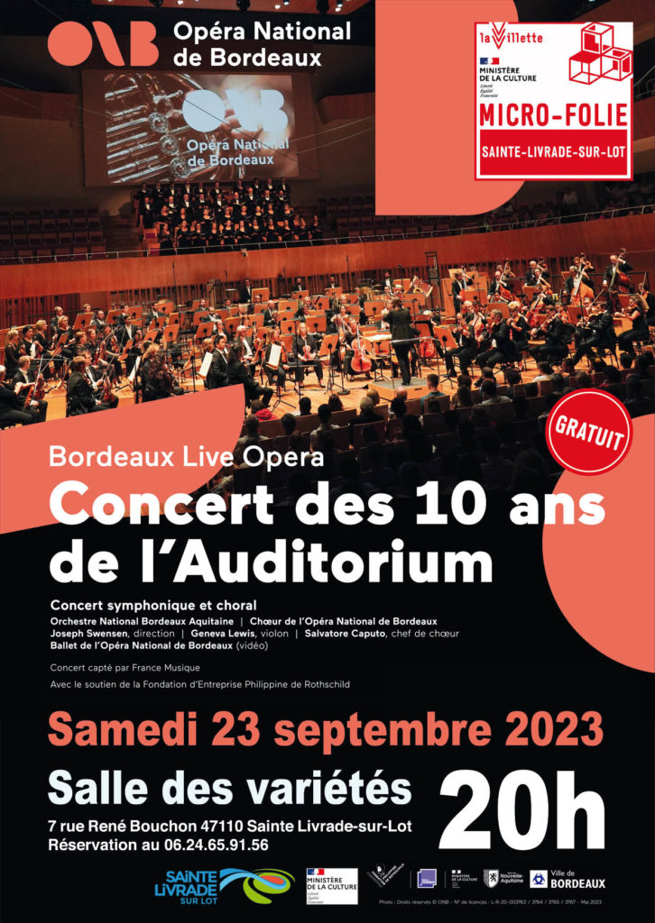 A l’occasion de l’anniversaire des dix ans de l’Auditorium, toutes les forces artistiques de l’Opéra se réunissent pour une soirée exceptionnelle qui sera retransmise en direct dans plusieurs lieux. La ville de Sainte Livrade-sur-Lot est partenaire de cet évènement.