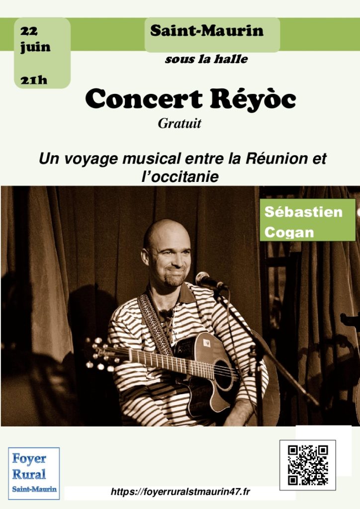 Le Foyer rural et Sébastien Cogan, musicien multi-instrumentiste, vous convie à un voyage musical de la Réunion à l’Occitanie.Bien connu dans le milieu occitan, Sébastien Cogan s’en échappe de temps en temps pour retrouver la musique de la Réunion où il a grandi pour la croiser, la mélanger avec les musiques d’Occitanie, sa terre d’immigration comme il aime le dire.
