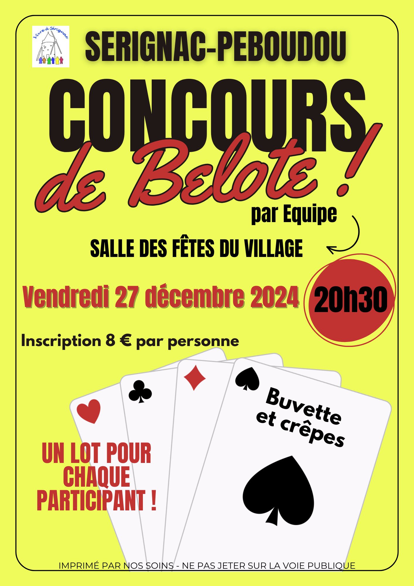 Concours de Belote en équipe à Sérignac-Peboudou le 27 décembre 2024 à 20h30.
