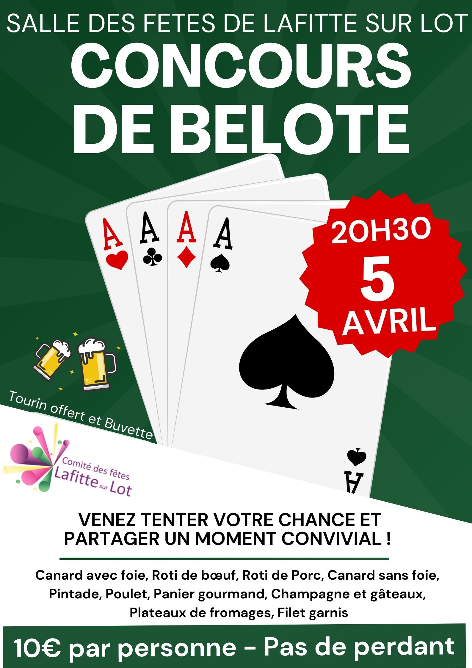 Venez passer un moment convivial et tester vos talents de joueurs de belote lors de notre concours annuel.