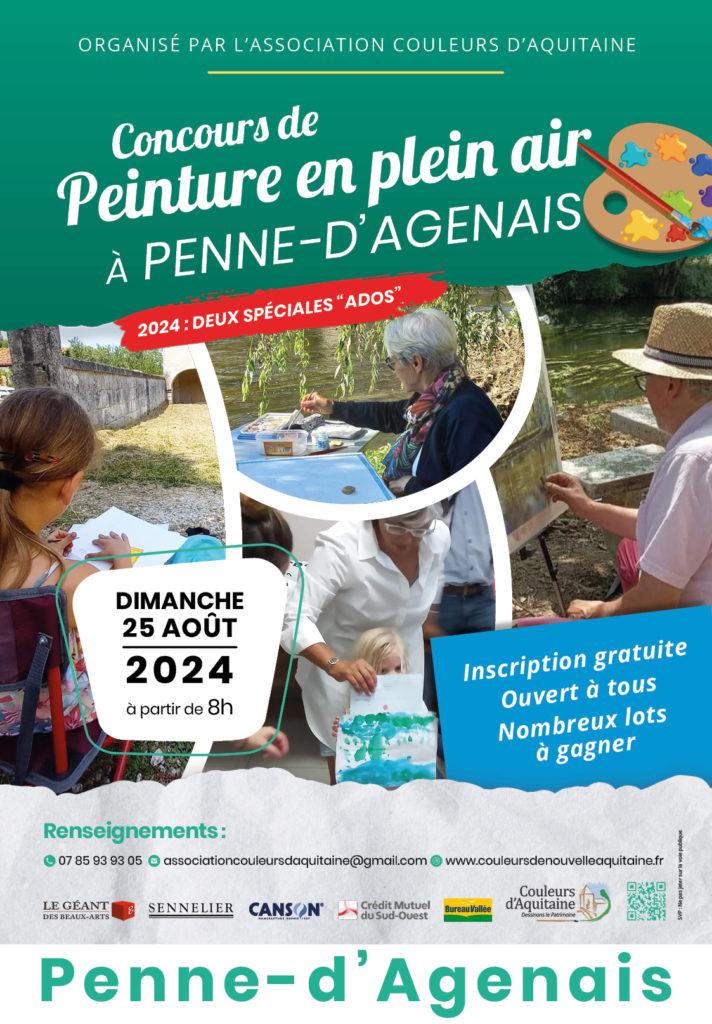 L’association Couleurs d’Aquitaine vous invite à participer à son concours annuel de peinture en plein air qui se déroulera à Penne-d’Agenais le dimanche 25 août 2024.