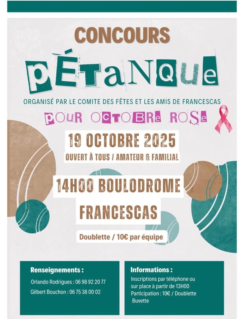 Concours ouvert à tous, sur le parking de la Salle des fêtes de Francescas.