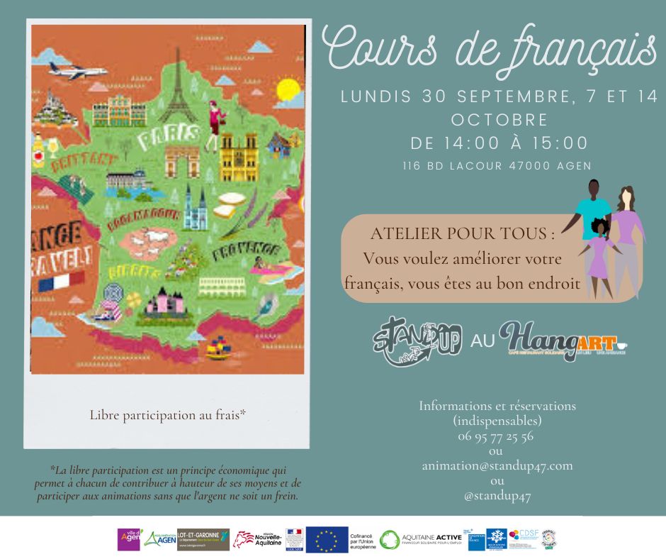 Vous avez des difficultés en français ?, venez au Hang’ART assister à nos cours.