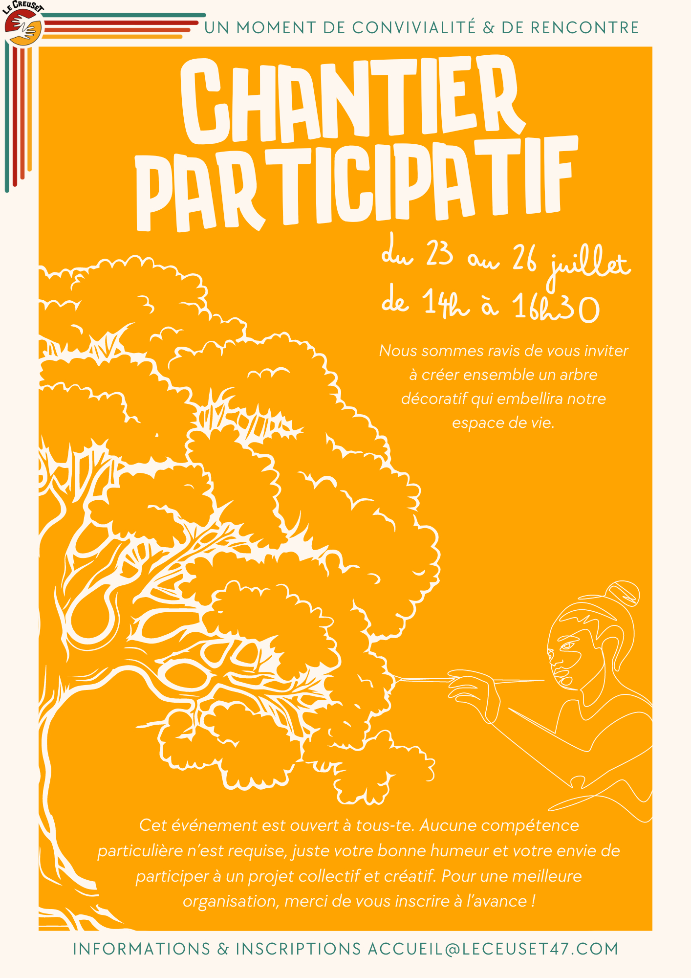 Du 23 au 26 juillet, de 14h à 16h30, rejoignez-nous pour un chantier participatif inoubliable !