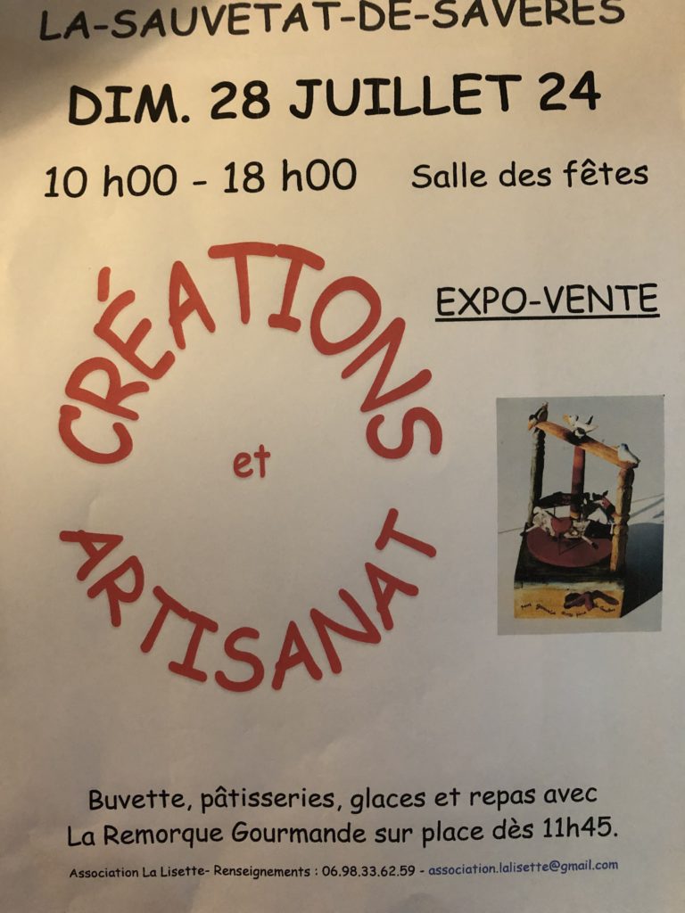 L’association La Lisette organise le Dimanche 28 juillet 2024 son salon Créations et Artisanat.
