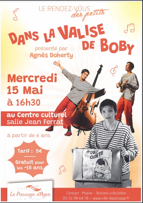 Spectacle interactif et ludique dans le monde de Boby Lapointe, par la Compagnie Agnès Doherty.Les chansons de Boby Lapointe sont des pépites truffées de blagues, de jeux de mots, de formules qui fonctionnent comme des phrases rythmiques. Cette écriture légère et joyeuse attire les enfants, mais il leur est difficile de percevoir sa complexité, on peut connaître par cœur une chanson sans la comprendre ! Le but de ce spectacle est précisément de rentrer au cœur des mots de Boby, de s’y attarder, de s’en amuser pour profiter de tous ces sens cachés. Pour cela, certaines chansons sont contées avant d’être chantées, d’autres deviennent des jeux… et au détour d’une blague ou d’un poème, on parlera d’amour, de chagrin et de la fameuse « babane anana» attitude ! Ce sera aussi l’occasion de découvrir de nombreux instruments. Agnès Doherty se présente avec une valise pleine de petits objets qui sont autant d’indices et avec les deux instruments les plus extrêmes de la famille des cordes : une contrebasse et un yukulélé ! Mais ce spectacle, ce sont les enfants qui le font : on chante, on devine les blagues, on interprète les histoires…Un spectacle qui ne prend pas les enfants pour des hélicons pon pon pon pon !Public conseillé à partir de 6 ans.Durée environ 1h.