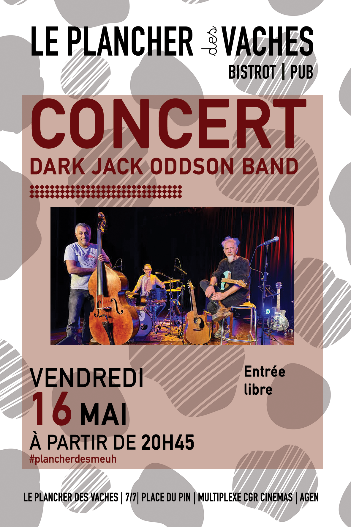 Quand la sincérité rencontre la musique, ça donne le Dark Jack Oddson Band : un trio formé autour des textes d’Éric, guitariste inspiré aux influences blues, folk, roots et jazz.