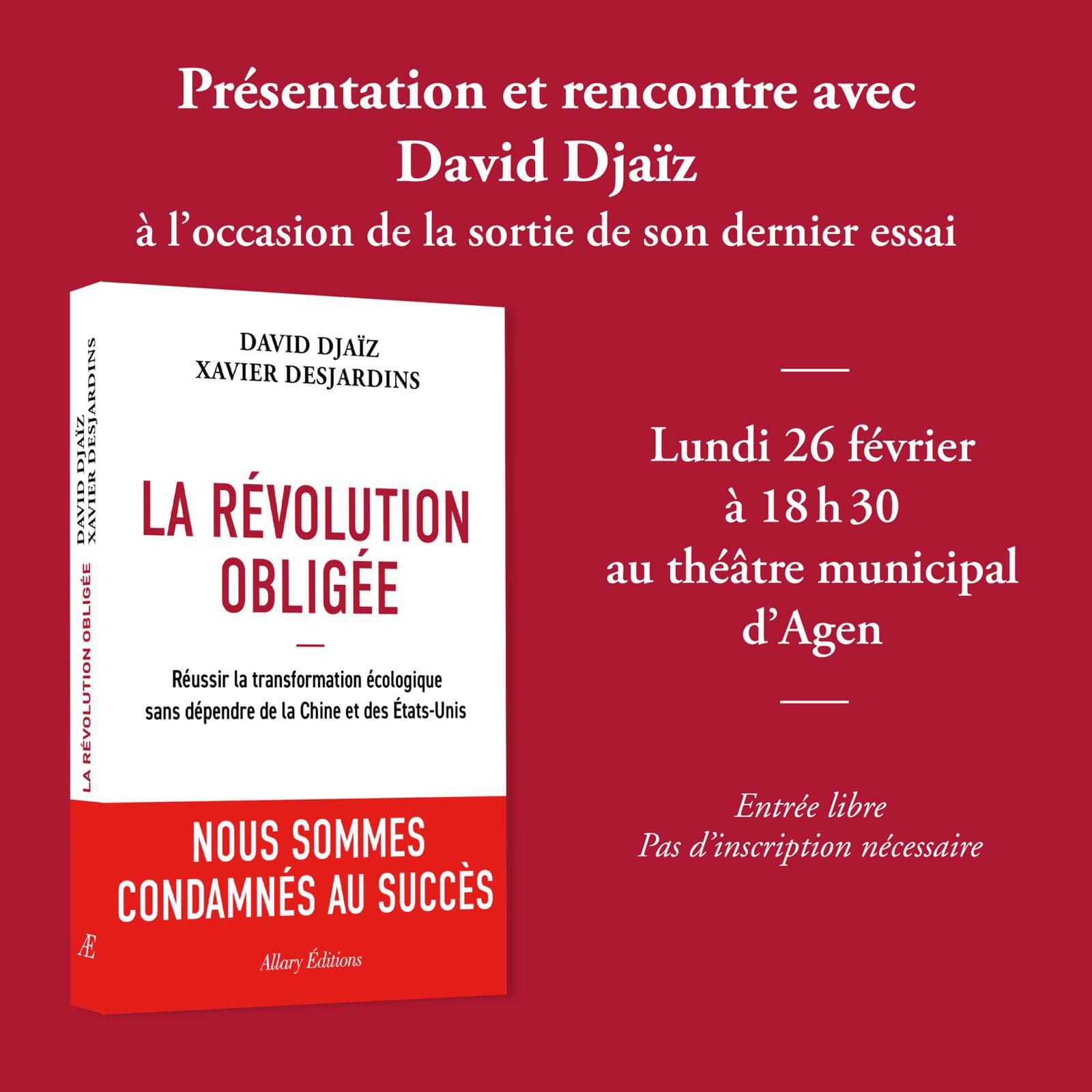 Présentation et rencontre avec David Djaïz à l’occasion de la sortie de son dernier livre « La révolution obligée ».