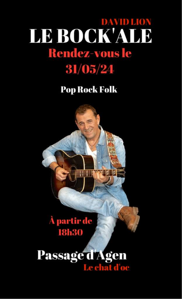 Concerts David Lion Apéritif en musique Le Bock'Ale (Centre Commercial le chat d'Oc) - Le Passage 55 Avenue de la Marne Le Passage Voir tous les événements se déroulant ici le 31 mai 2024 18h30 Gratuit Apéritif en musique. Le Bock'Ale 06 70 95 72 99 Lebockalex@gmail.com