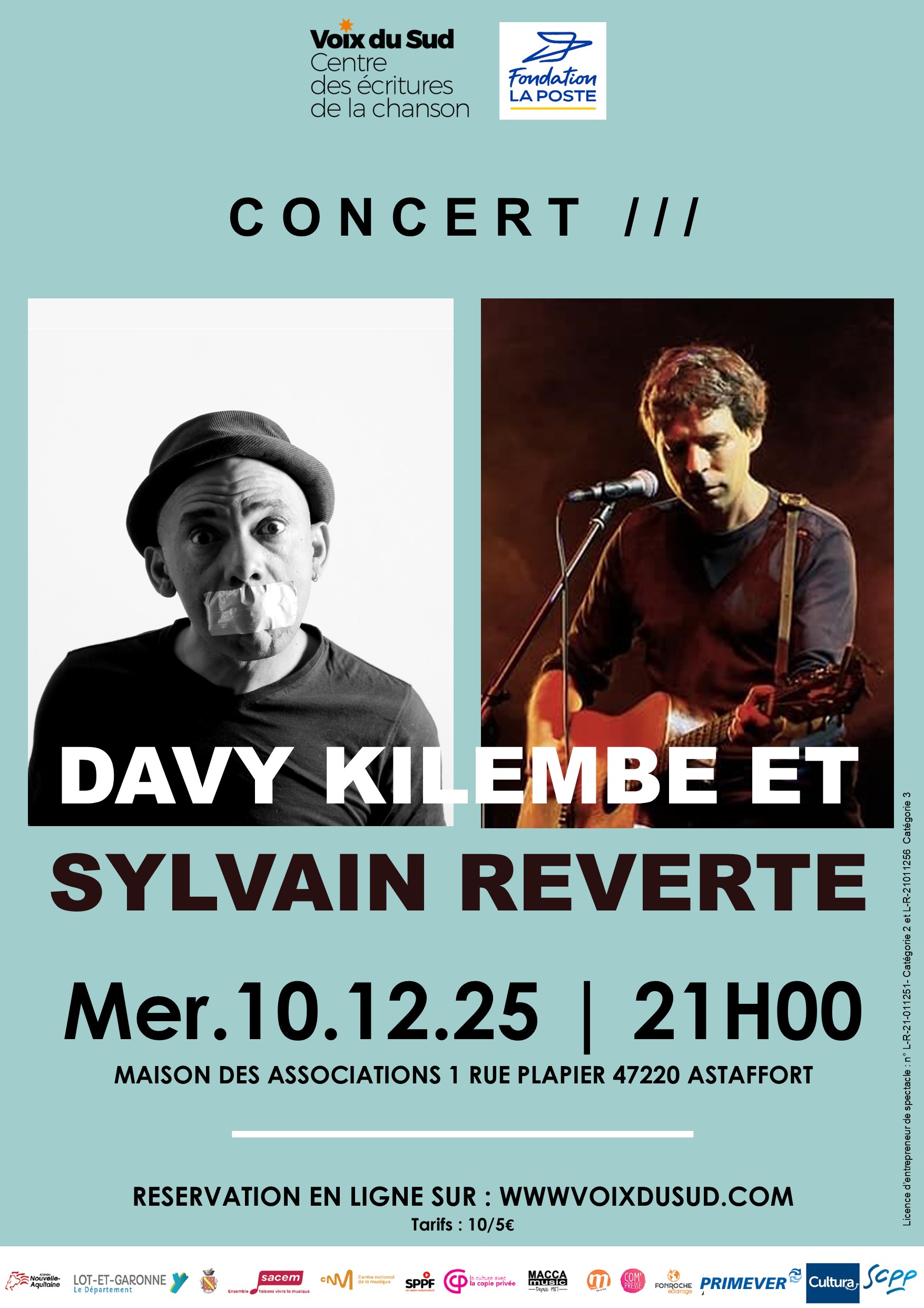 Concert des deux artistes associés à notre formation Labo Chansons : Sylvain Reverte et Davy Kilembé.