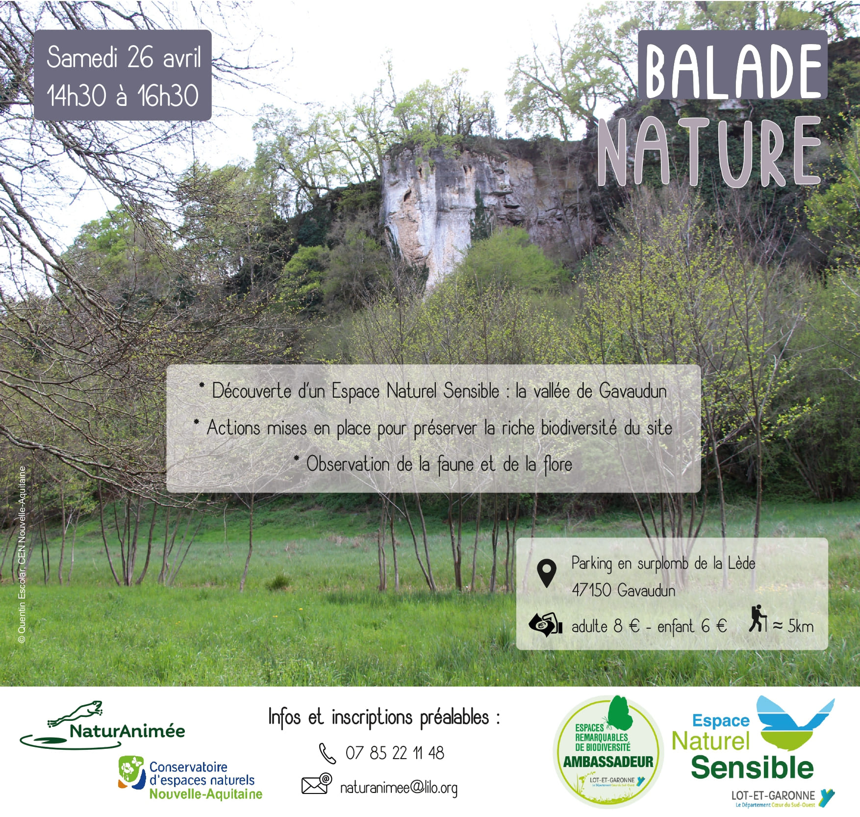 Nous partirons en balade dans la vallée de Gavaudun, joyau de verdure encore préservé. Nous suivrons la Lède, bordée par sa ripisylve et sillonnant les prairies humides encadrées par des falaises escarpées.