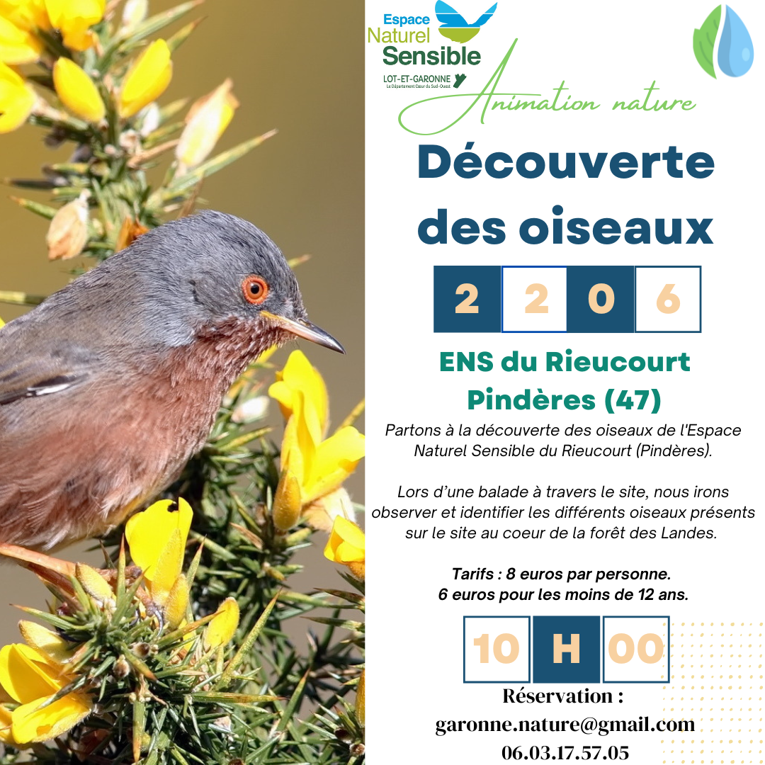Partons à la découverte des oiseaux de l’Espace Naturel Sensible du Rieucourt (Pindères).