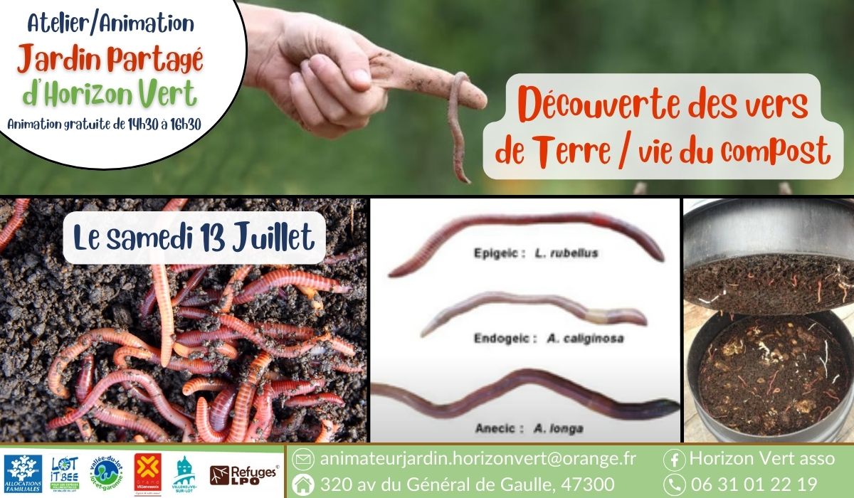 Atelier théorique et pratique sur la connaissance des vers de terre et leur utilité pour nos éco-système.Compléments sur le compost et le vermi-compostage.L’atelier sera ludique et conviendra très bien à un public familial.