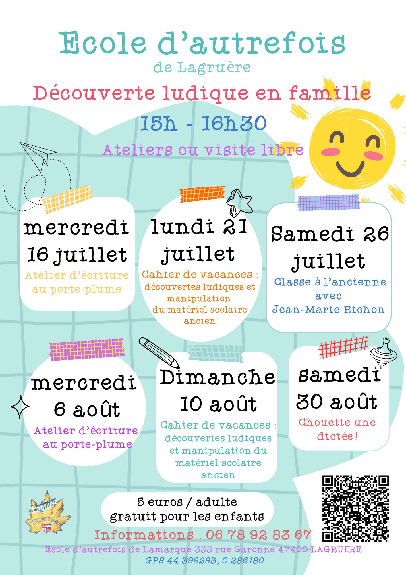 - Dimanche 10 août – Cahier de vacances: découvertes ludiques et manipulation du matériel scolaire ancien