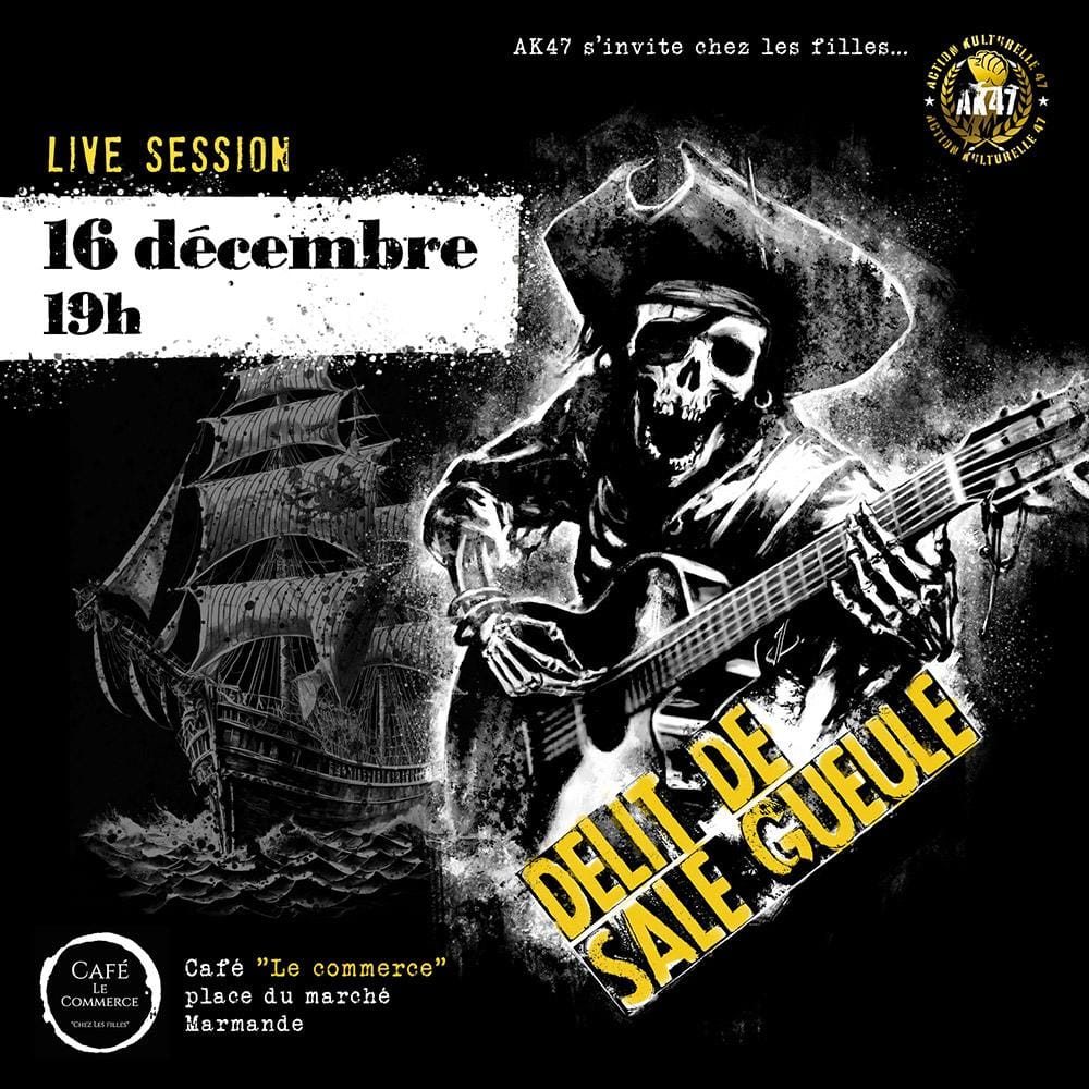 Concerts Délit de sale gueule Café Le Commerce Chez les filles - Marmande 8 Place du Marché Marmande Voir tous les événements se déroulant ici le 16 décembre 2023 19h Gratuit Page Facebook Proposé par Action Kulturelle 47. Piraterie en cours ! AK47 et Café Le Commerce Chez les filles 05 53 93 08 61 barlecommercemarmande@gmail.com