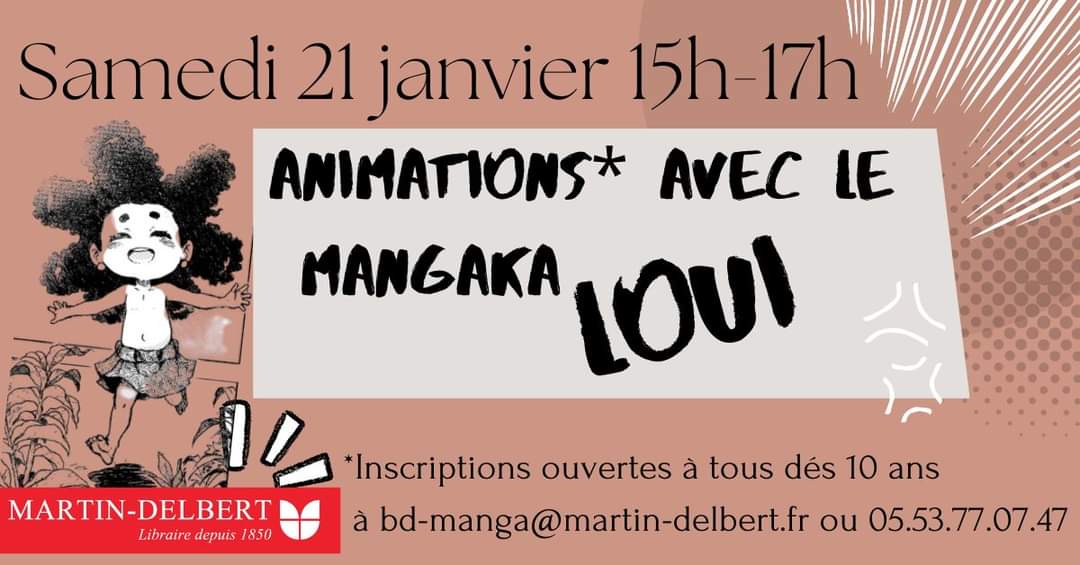 Les places sont ouvertes à tous dés 10 ans. Attention places limitées donc réservation à bd-manga@martin-delbert.fr ou 05 53 77 07 47.