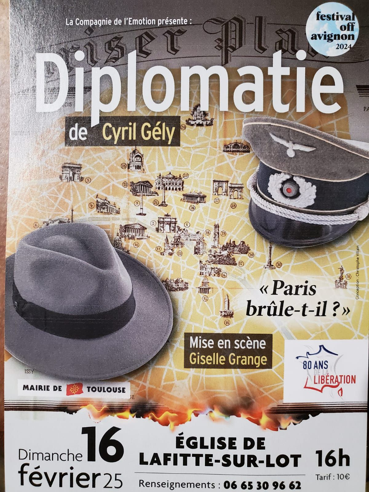 La Compagnie de l’Emotion a la plaisir de vous proposer la pièce de théâtre Diplomatie de Cyril Gély, mise en scène par Giselle Grange.
