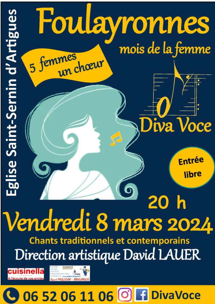 A l’occasion de la journée internationale des droits des femmes, l’ensemble Diva Voce propose un concert « Voix de femmes pour les femmes » placé sous la direction artistique de David Lauer, ténor professionnel, organiste et professeur de chant choral au Conservatoire d’Agen.