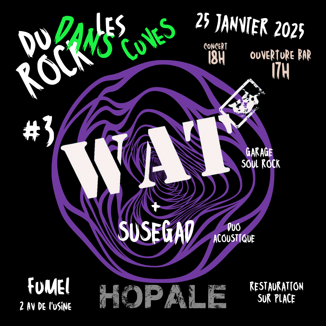 3ème session de « du rock dans les cuves » avec WAT et Susegad en 1ère partie.