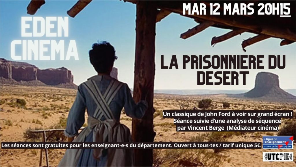 Projection du film LA PRISONNIÈRE DU DÉSERT de John Ford suivie d’une analyse de séquence par Vincent Berge (médiateur cinéma).