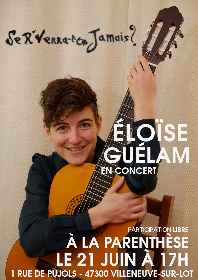 Eloïse Guélam’ chante ses chansons, qu’elle accompagne à la guitare, dans un récital intitulé « Se r’verra-t-on jamais ? », au bord du Lot, dans un salon de thé très agréable : La Parenthèse.