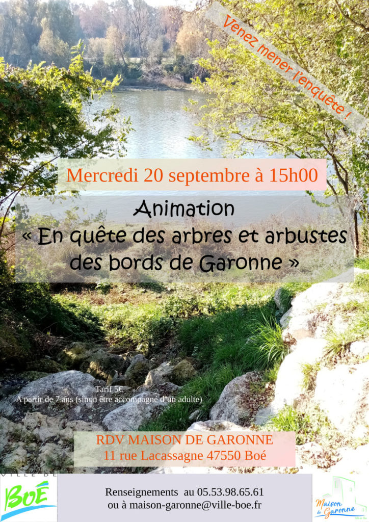 Les enfants partent à la découverte des arbres et arbustes typiques des bords de Garonne, sous forme d’enquête à mener. Ils en apprendront un peu plus sur les végétaux recherchés, à travers des portraits types et des indices à relever.