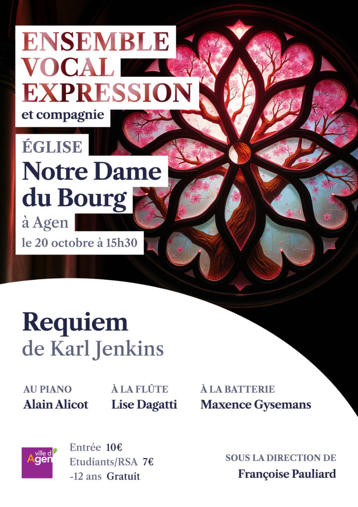 Cette année l’Ensemble vocal Expression et les chorales amies Impulsion Villeneuve et Quercycorum de Montaigu du Quercy vous invitent à venir écouter le Requiem, oeuvre magistrale de ce même compositeur.