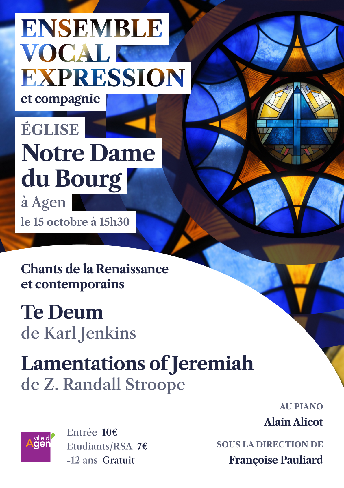 L’Ensemble vocal d’Agen Expression et les chorales amies de Villeneuve et Montaigu de Quercy ,dirigées par Françoise Pauliard, donneront un concert en l’Eglise Notre Dame du Bourg.