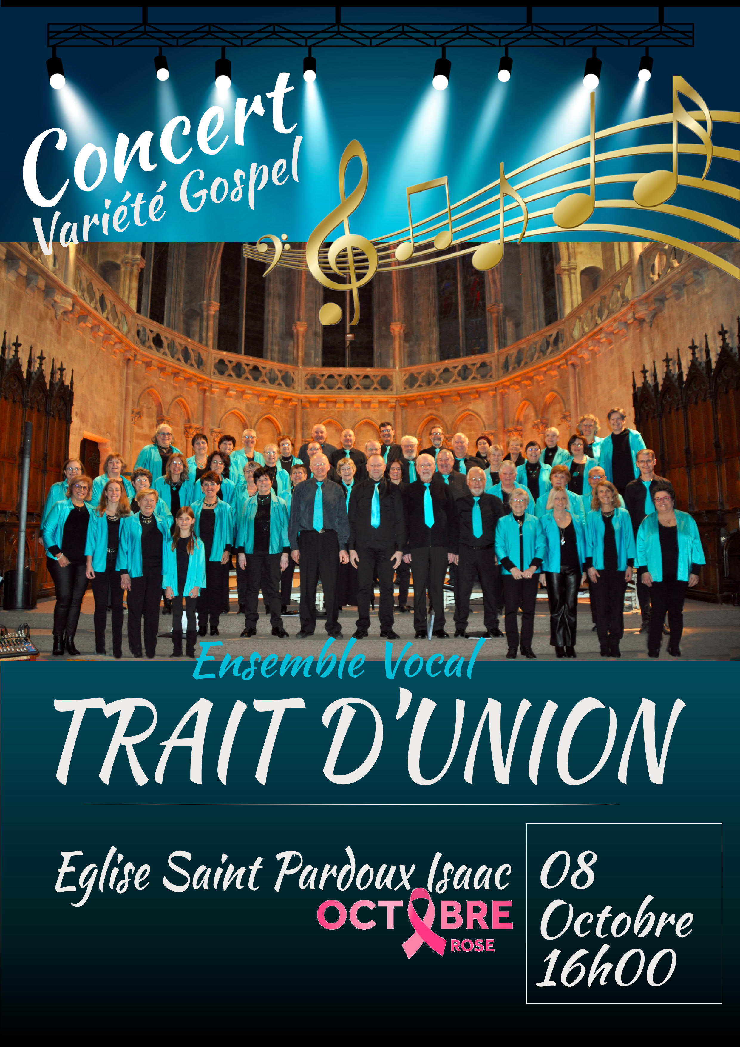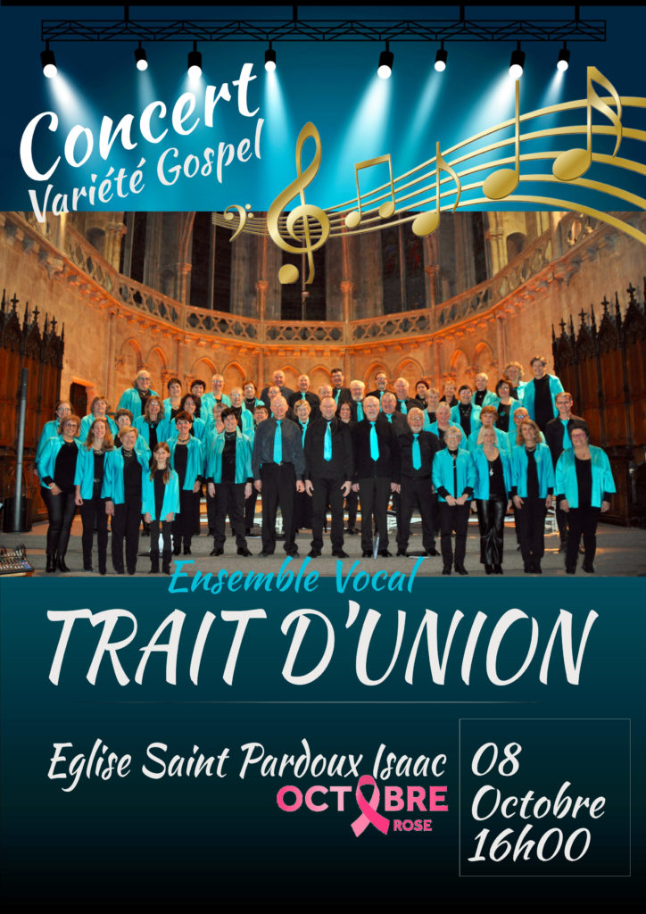 Concert Variétés et Gospel avec le groupe Trait d’Union, composé de 40 choristes.