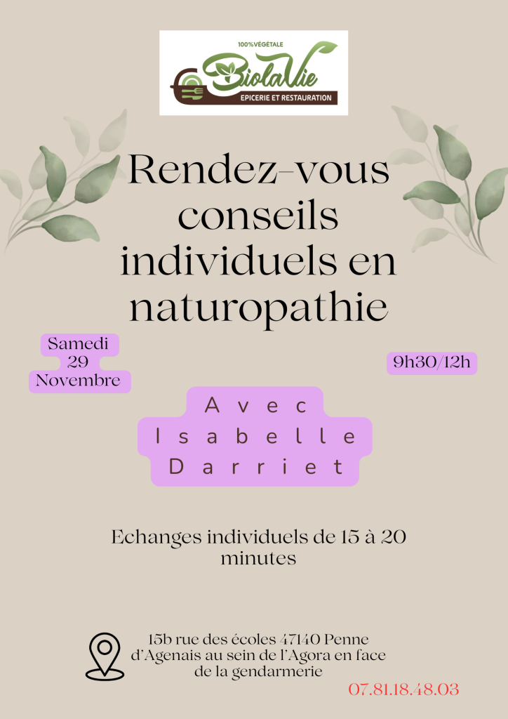 Venez profiter d’un entretien individuel gratuit de 15 min en naturopathie avec Isabelle Darriet.