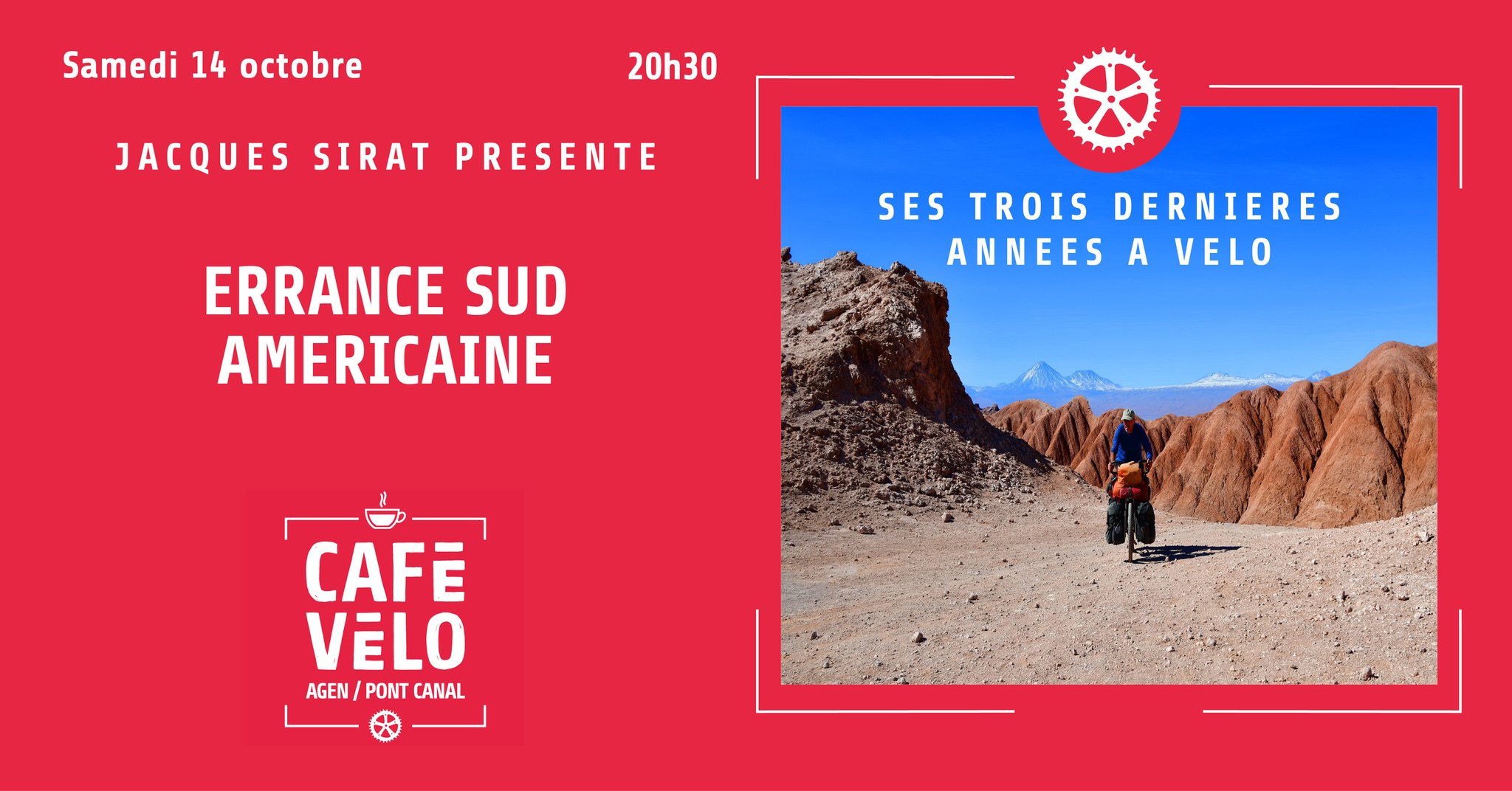 Au cours de cette nouvelle projection, intitulée « Errance Sud-américaine », Jacques Sira vous contera ses trois dernières années de route entre Colombie, Venezuela, Chili, Bolivie, Paraguay, Argentine, Uruguay et Brésil.