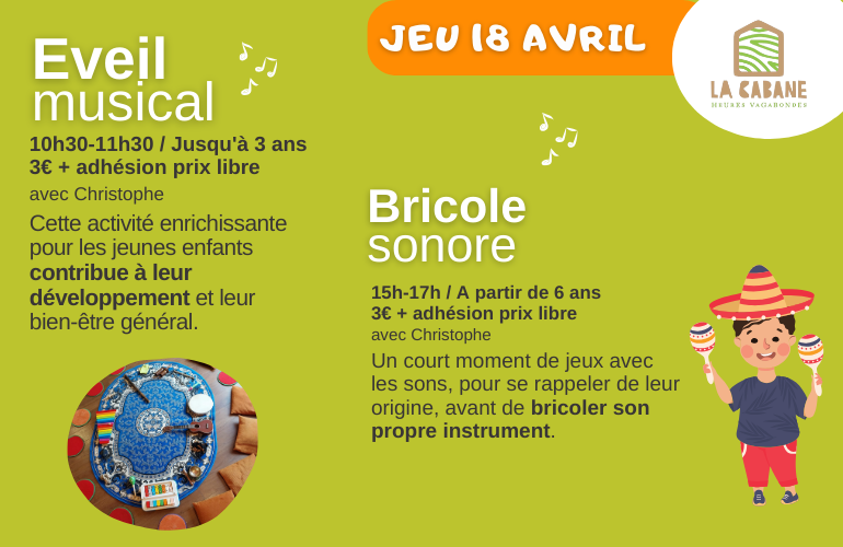 le 18 avril 2024 De 10h30 à 11h30 Familial 3€ + adhésion prix libre