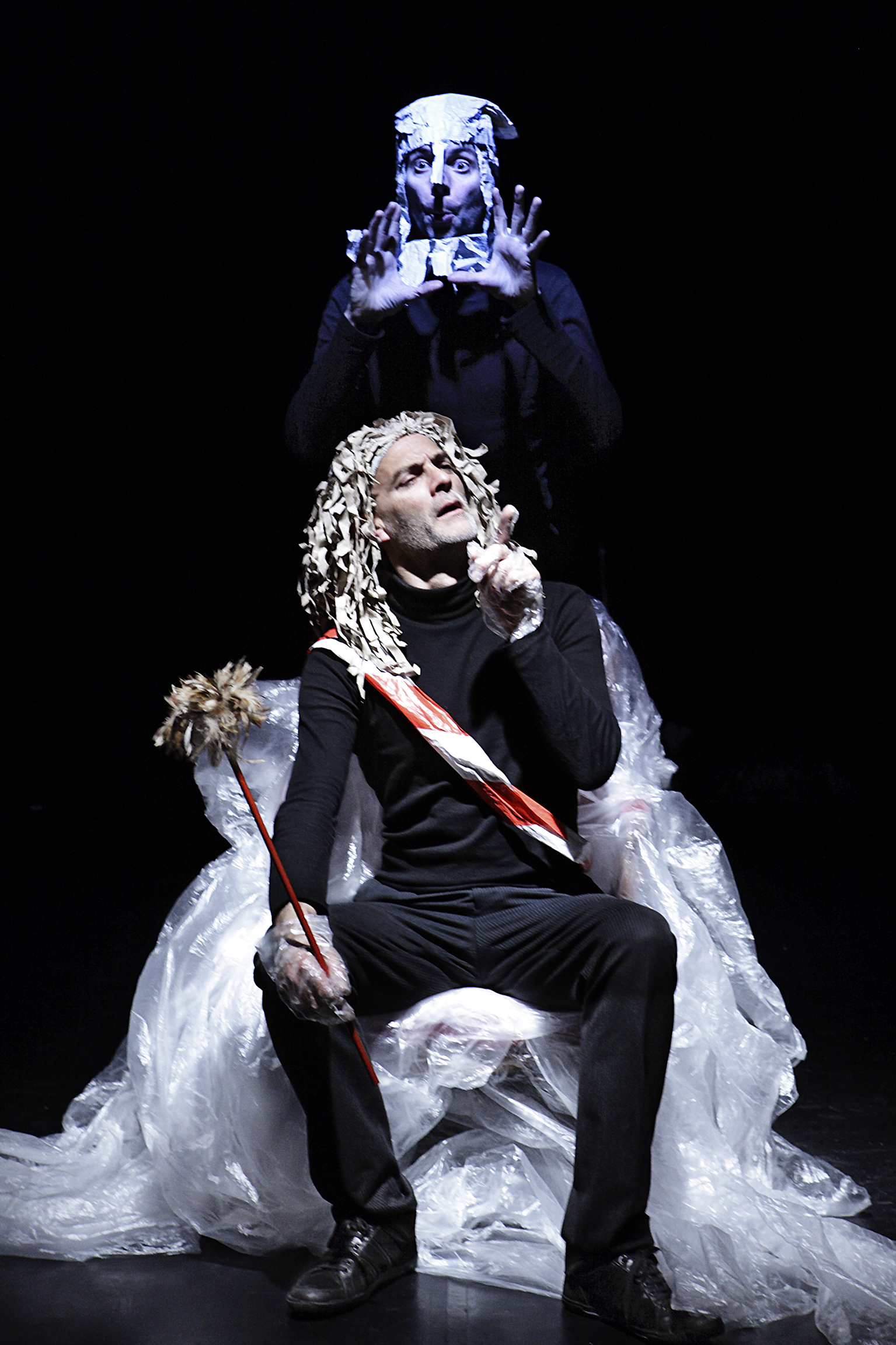 D’un journal, d’un carton ou d’un sac en plastique, ils font surgir toute une galerie cocasse et étonnante où chaque personnage cache un animal et chaque animal… un homme. Ils donnent corps et voix tantôt à l’âne, tantôt au lion, tantôt au chien et tantôt au loup. Ils nous guident en équilibristes à travers des histoires patiemment agencées, parmi des êtres qui nous ressemblent à s’y méprendre.