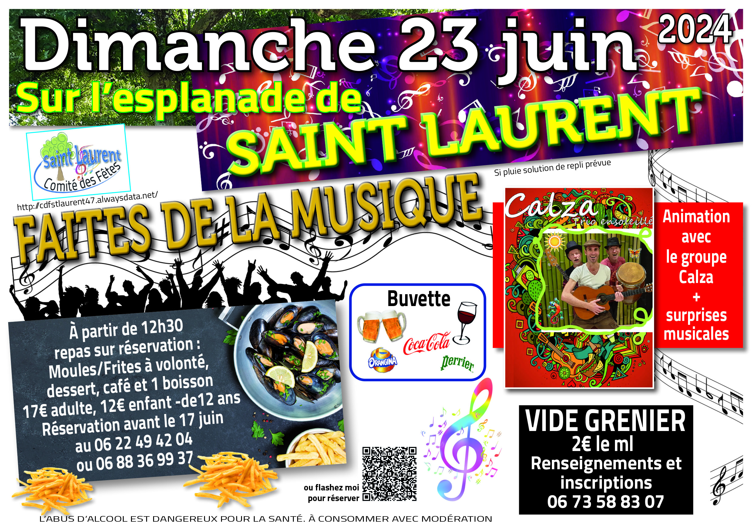 Buvette et repas moules frites à volonté à partir de 12h30, réservations avant le 17 juin.