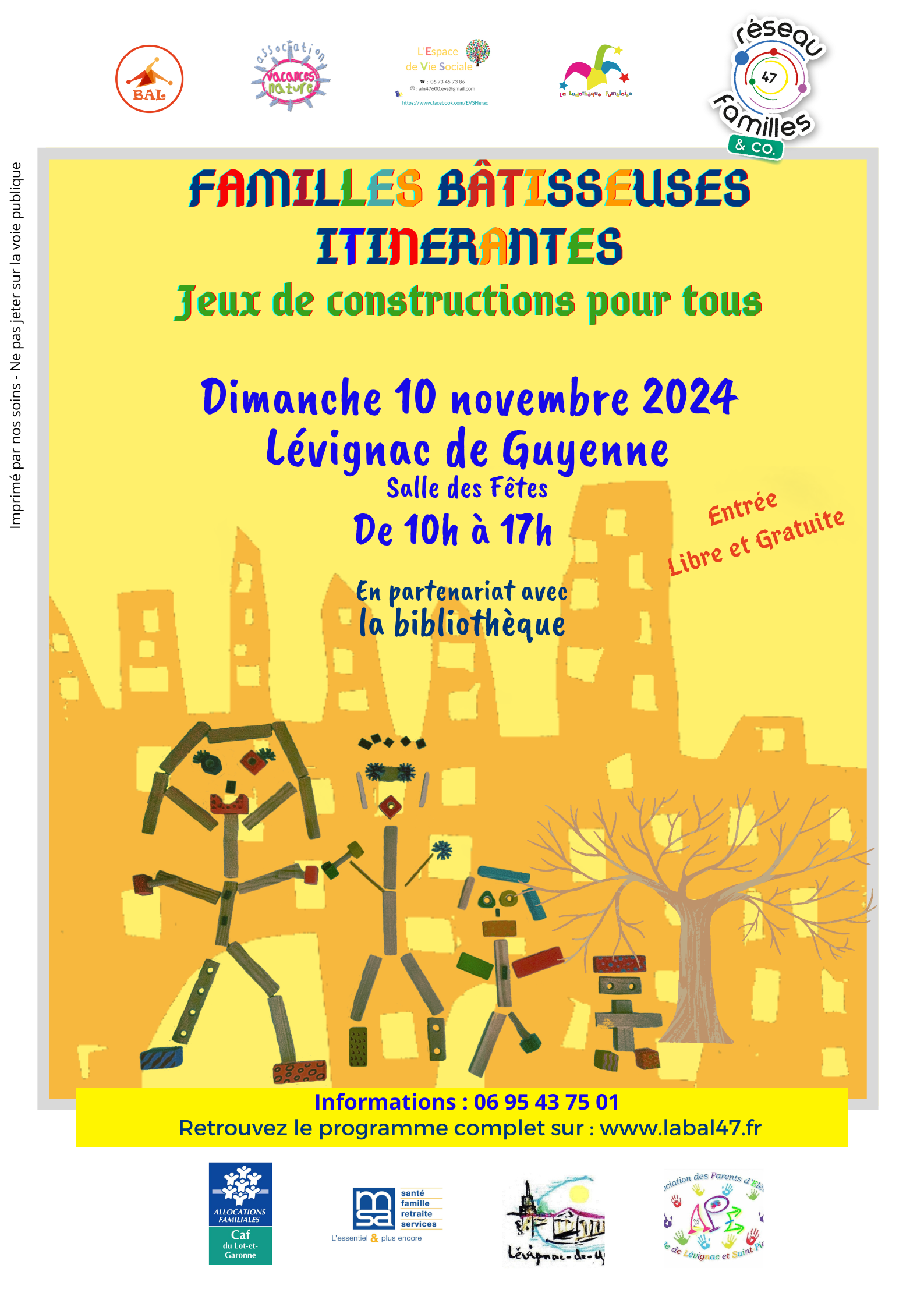 Le festival des Familles Bâtisseuses Itinérantes, ça continue et ce dimanche nous serons à la salle des fêtes de Lévignac de Guyenne.