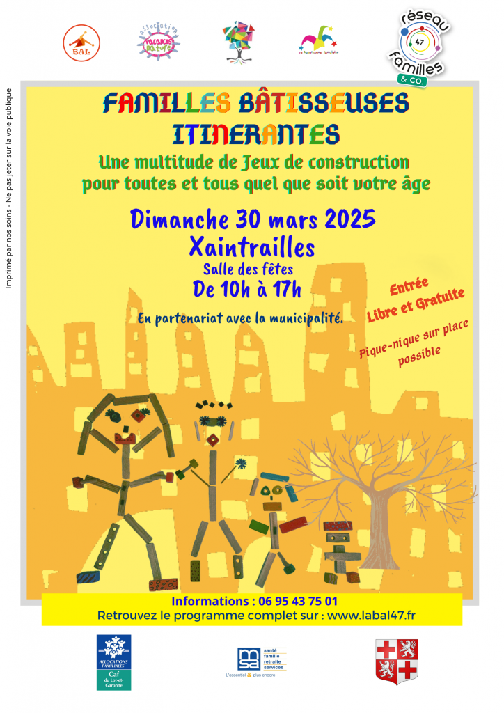 Le festival des Familles Bâtisseuses Itinérantes continue en 2025, nous serons à la salle des fêtes de Xaintrailles.