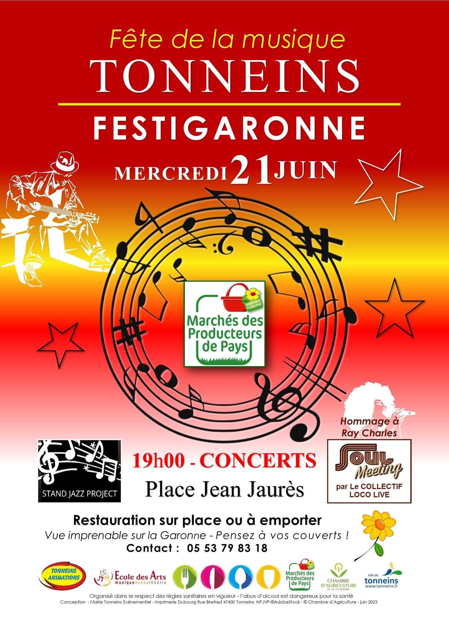 Festigaronne est la déclinaison Tonneinquaise de la fête de la musique et pour cette année 2023 deux concerts seront à l’affiche : Stand Jazz Project et Soul Meeting (avec un hommage musical à Ray Charles).