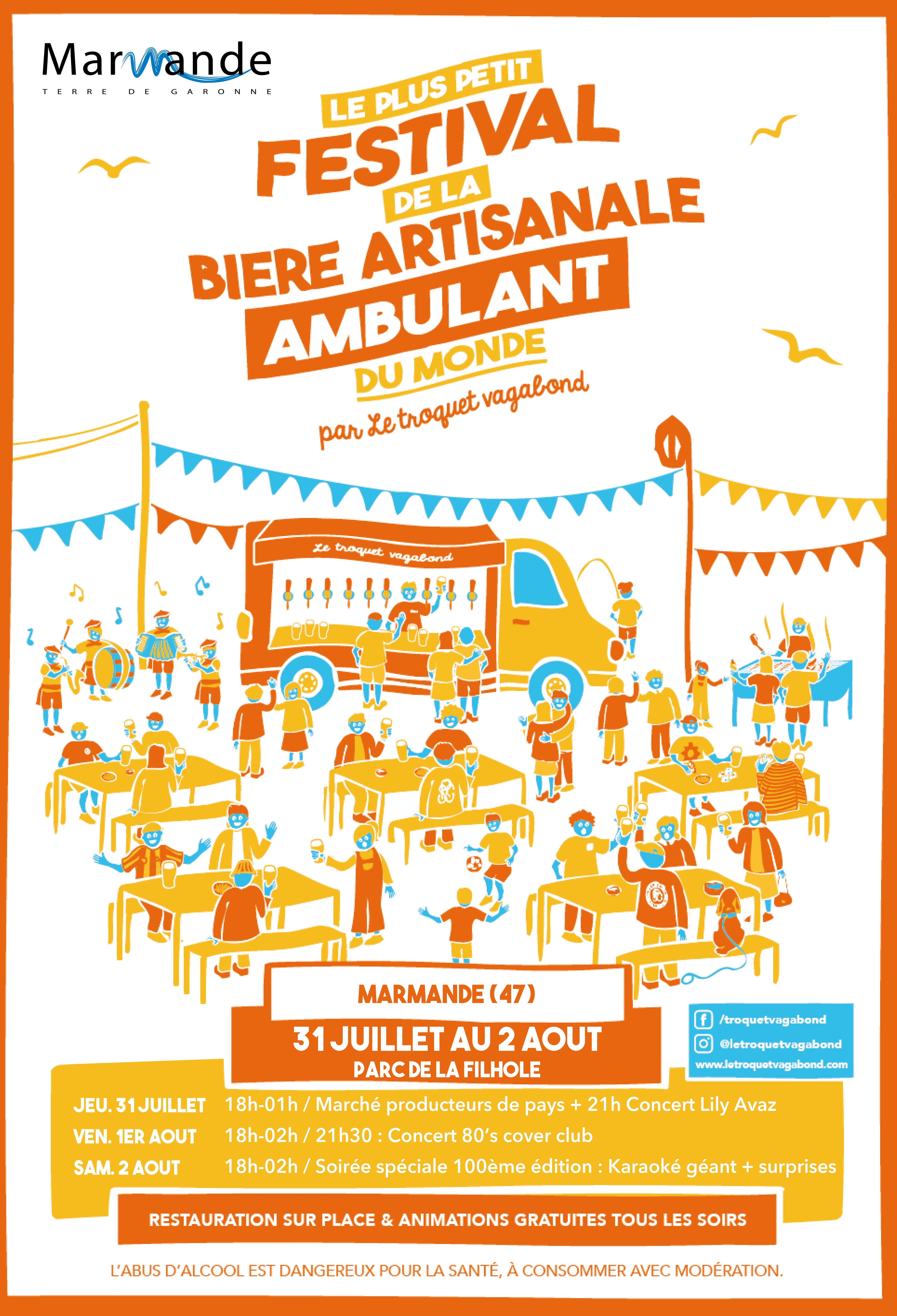 Le Festival de la Bière s’installe à Marmande pour 3 jours de convivialité, de saveurs locales et de musique, en co-organisation avec le Troquet Vagabond : un bar ambulant installé dans un ancien camion de pompier, qui met à l’honneur les bières artisanales et locales à la pression !