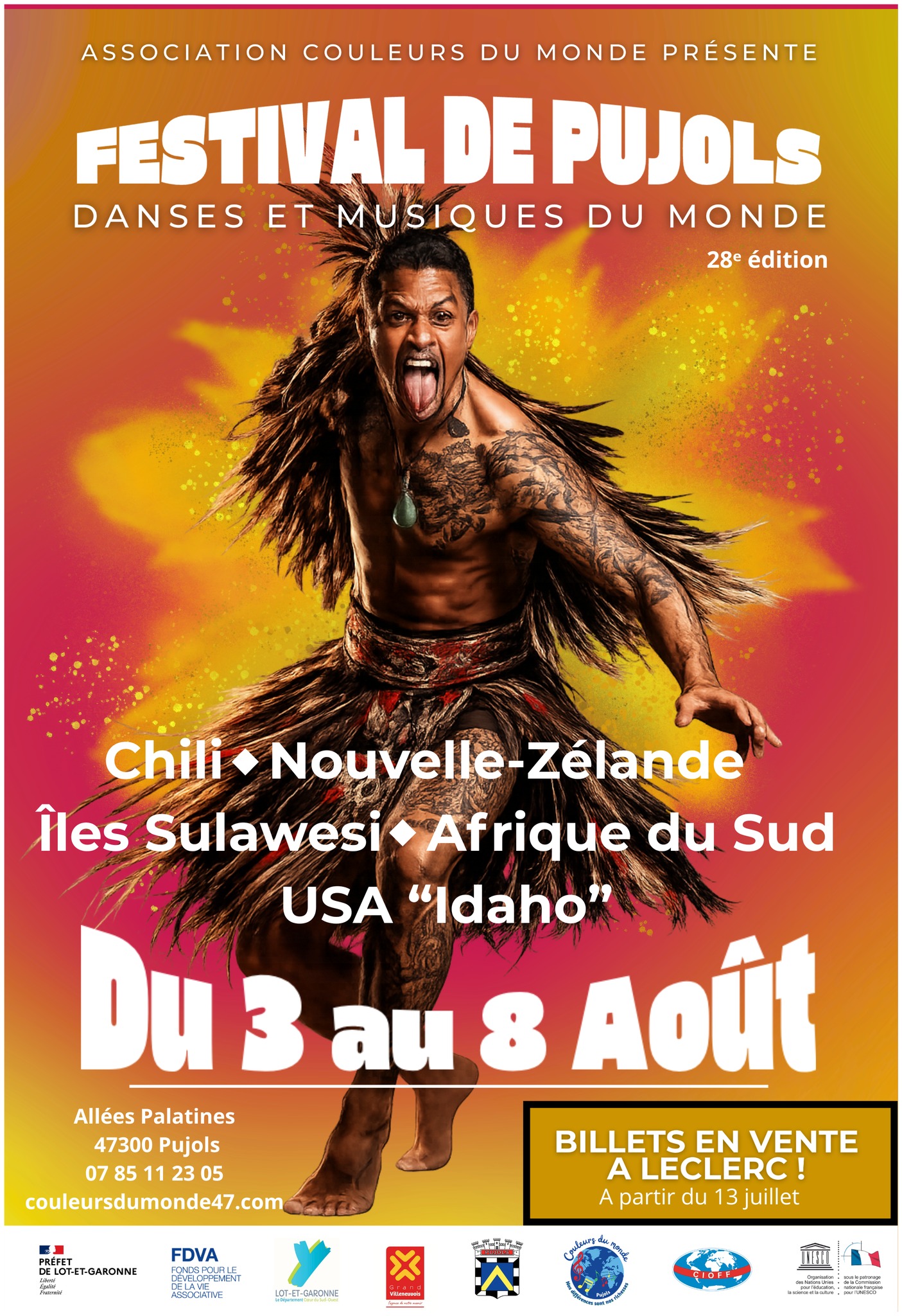 Depuis 28 ans, le Festival de Pujols, conduit par l’association Couleurs du Monde, présente des spectacles folkloriques rassemblant des pays du monde entier.