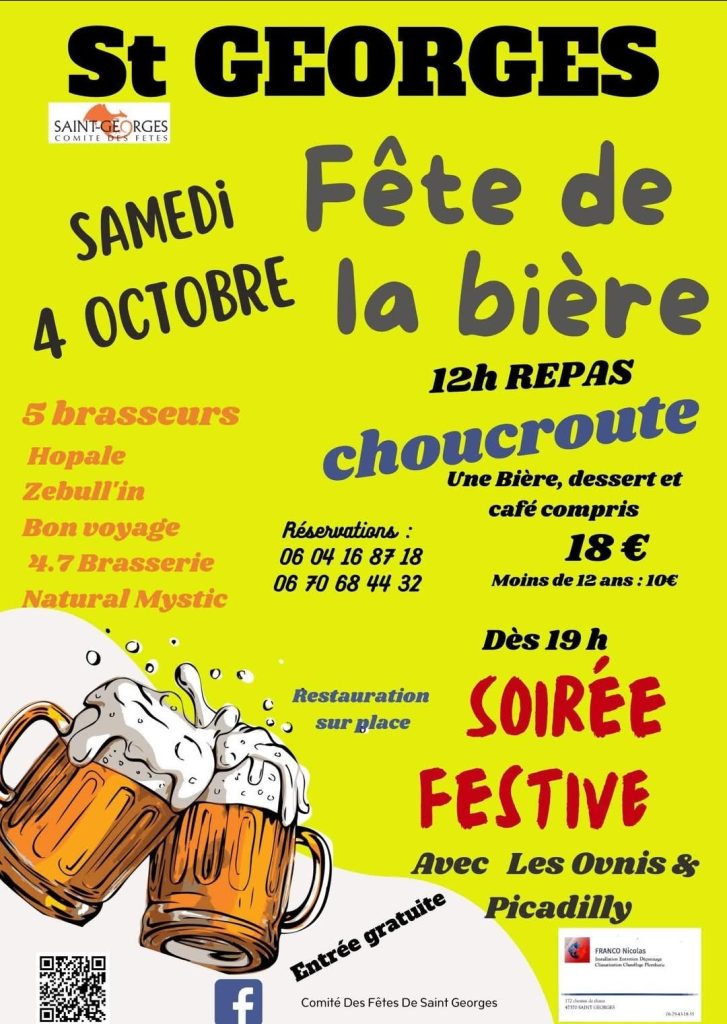 La Fête de la Bière à Saint Georges se déroulera le Samedi 4 octobre.